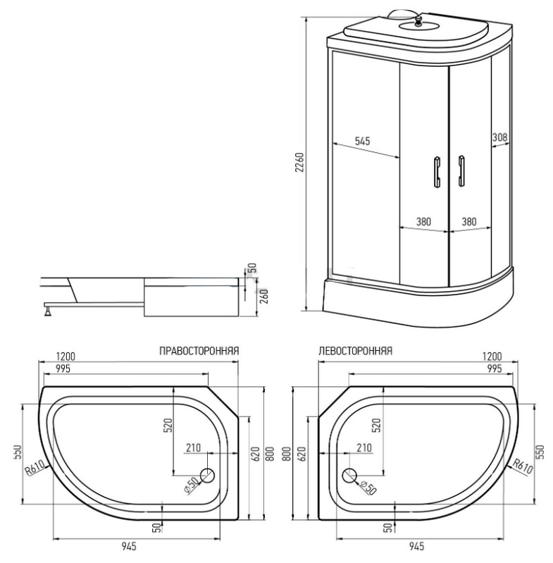 • Универсальные детали в рамках одной серии душевых кабин – позволяет с легкостью заменить какую-либо внутреннюю деталь.