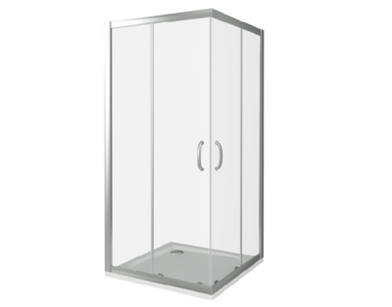 Угловая модель – ограждение с двумя откатными дверьми 120х80х1850. Душевые ограждения серии «Infinity» выпускаются в трёх вариантах исполнения с прозрачным стеклом, стеклом грэйп и стеклом с рисунком «Горизонтальные полоски».