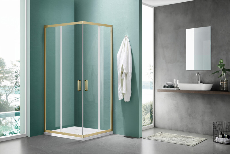 Душевое ограждение SANTREK AQUA Iris-CR-900-C-Brushed Gold 900*900*1850 Г-обр. стекло Прозр 6мм, профиль Брашированное золото