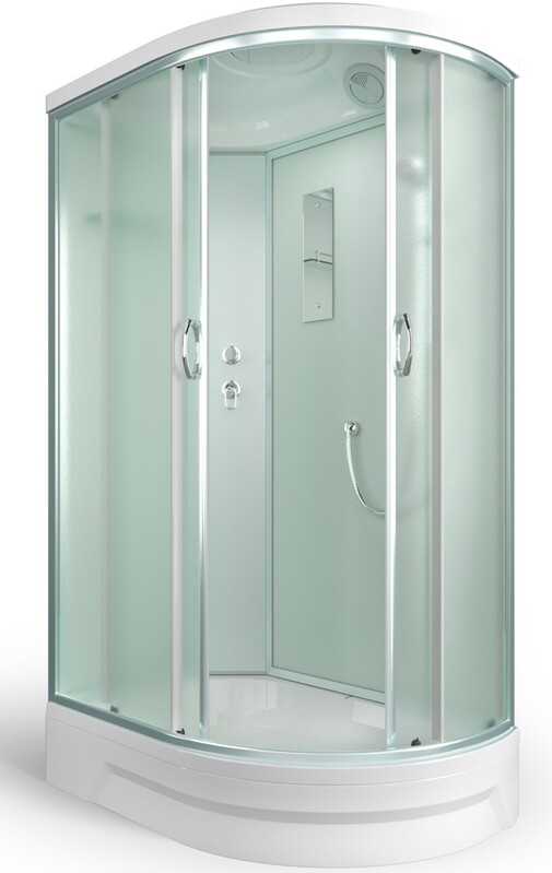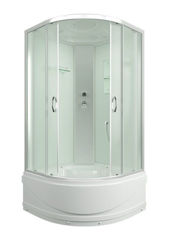 ERLIT. Душ. кабина ER3508TP-C3 RUS 80*80*215см,зад.ст белое.стекло ст.мат. 4 мм выс. под.без г/м.проф.хром. 3к.