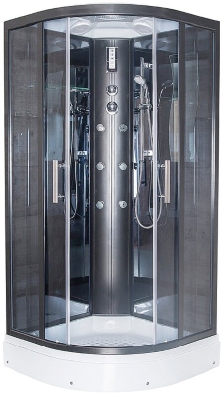 ERLIT. Душ. кабина ER570917-C24-RUS 900*900*2100см, зад стенка зеркальная ст.тон. 4 мм г/м низ.под. проф.чер.