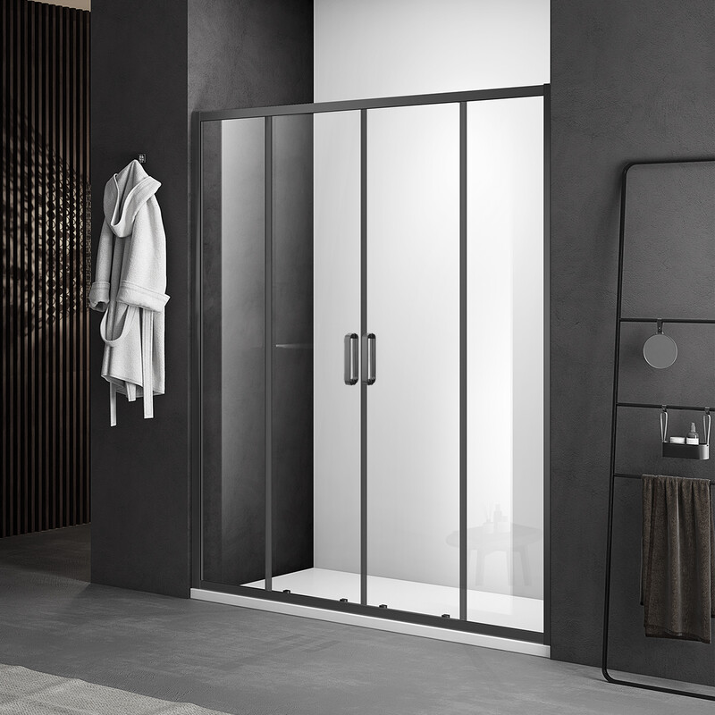 Душевое ограждение SANTREK AQUA Iris- DF-1600-C-Matt Black 1600*1850 Прямое стекло Прозр 6мм, профиль Чёрный