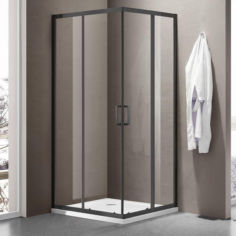 Душевое ограждение SANTREK AQUA Iris-CR-900-C-Matt Black 900*900*1850 Г-обр. стекло Прозр 6мм, профиль Чёрный