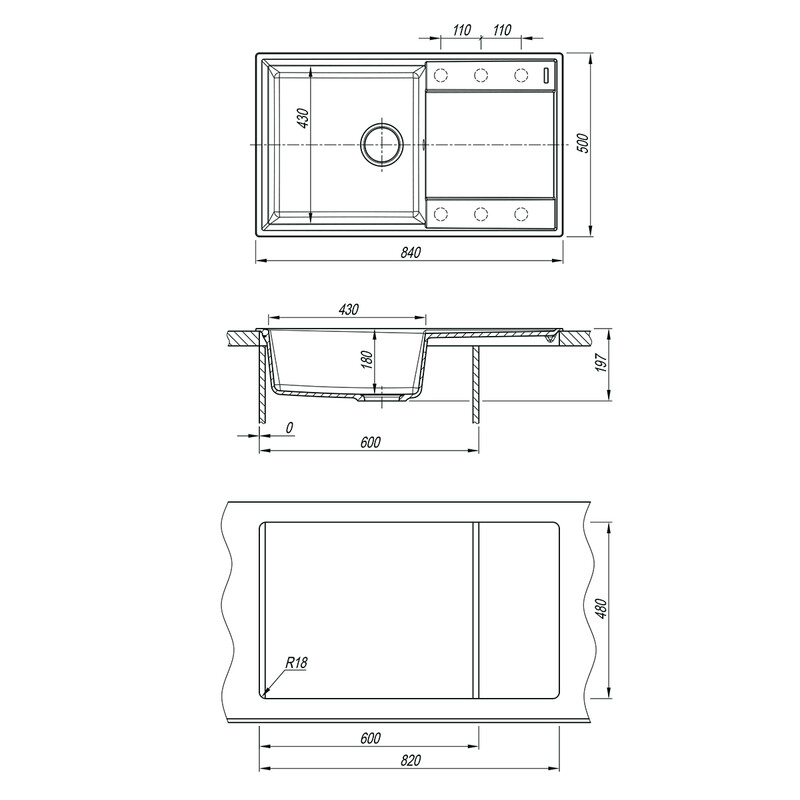 - Глубина чаши: 180 мм