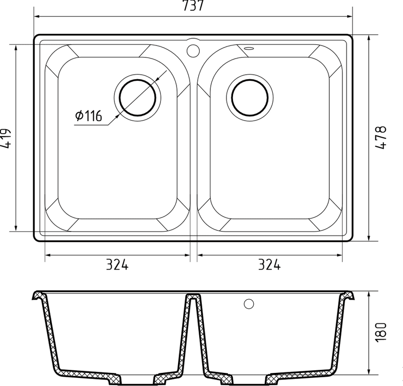 Мойка для кухни GranFest Quarz 15 – модель, которую обязательно оценят поклонники простых и лаконичных дизайнерских решений. Цветовая гамма, включающая в себя 6 естественных оттенков, позволяет каждому найти вариант по душе. Текстура натурального камня привносит в помещение особое благородство и ощущение единения с природой. Мойки для кухни GranFest Quarz сочетают в себе высокое качество и прекрасные потребительские характеристики: • ударопрочность; • устойчивость к царапинам; • отсутствие пористости; • устойчивость к воздействию высоких температур; • антибактериальные свойства; • гидрофобность; • защиту от воздействия красящих веществ. Материал изготовления – 80 % частиц кварца и 20 % связующего компонента, что обеспечивает надежность и долговечность модели.