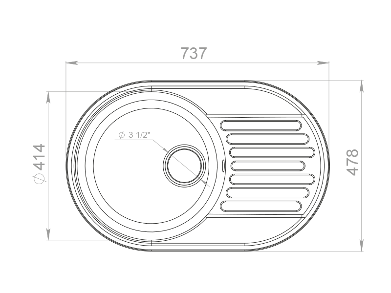 Размер чаши: 414x180 мм