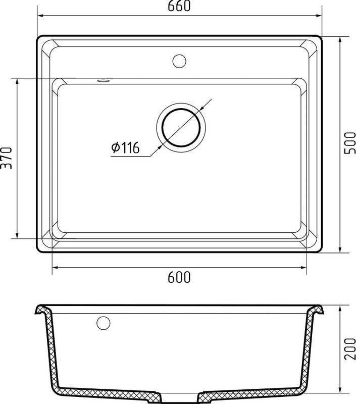Мойка для кухни GranFest Level GF-LV--660 - наделяет интерьер визуальной гармонией и комфортом в использовании. Дизайнерскую модель отличают большая практичная чаша размером 600*370 мм, и глубиной 200 мм, которая с легкостью позволит разместить внутри крупногабаритную посуду и промывать ее без лишних усилий.