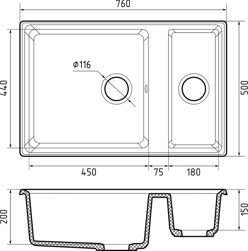 Мойка GRANFEST GF-LV--760K 1,5 чаши 760*500 (кашемир)