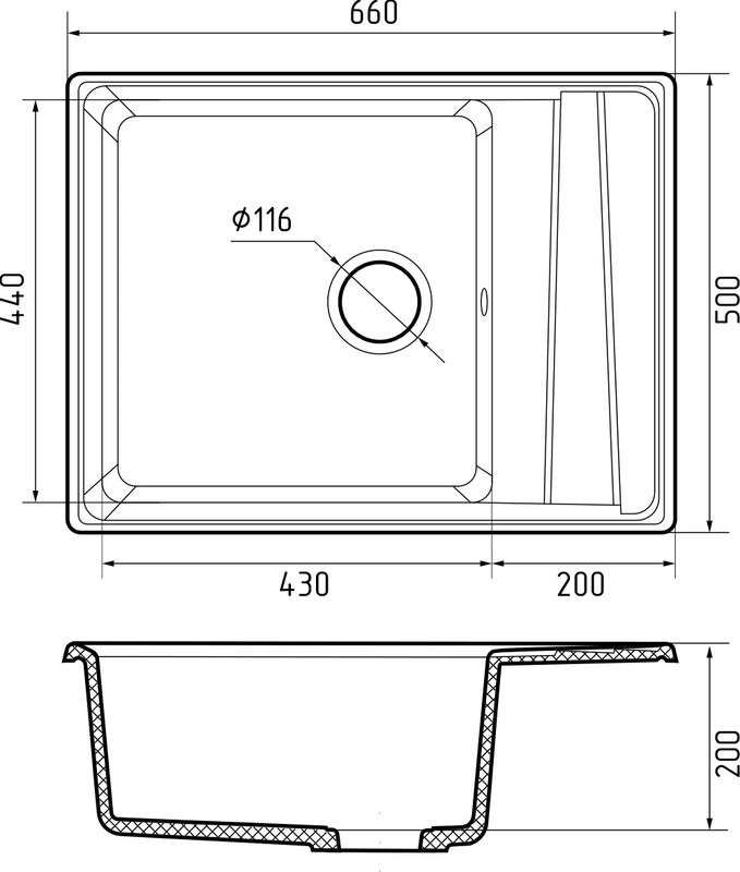 Мойка 1 шт., сливная арматура 1 шт., паспорт 1 шт