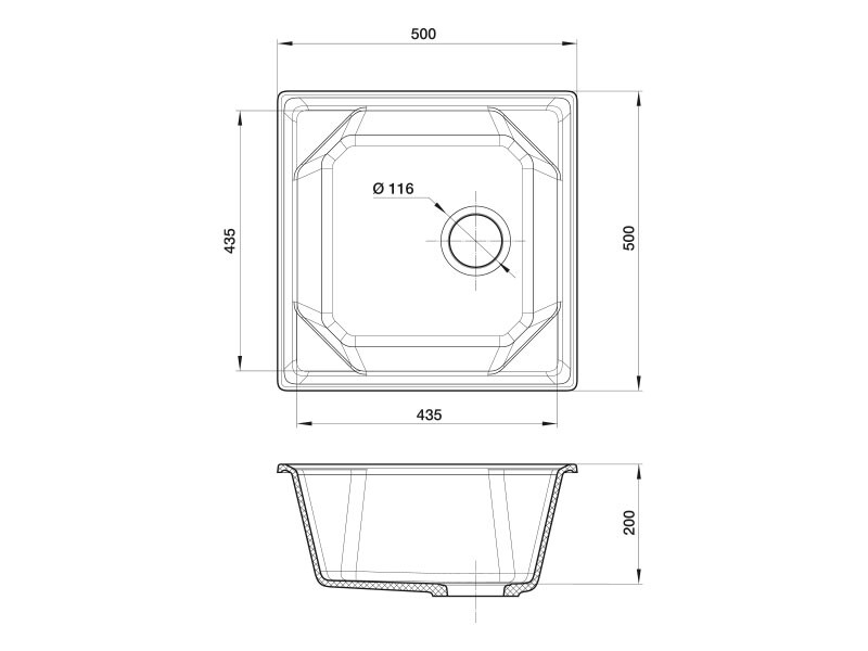 Мойка для кухни GranFest UNIQUE 500 легко отличить от любых других благодаря выраженной геометрии. Модели не только выделяются своей индивидуальностью, но и практичны и функциональны — в таких мойках очень легко мыть даже крупные по своим размерам предметы и работать с продуктами, не стесняя себя с точки зрения рабочего пространства. Но, при этом, визуальное воплощение по-современному минималистичное. Благодаря этому мойки, выполненные в данном стиле, очень легко вписывать как в интерьеры кухни стиля хай-тек, так и в минималистичные пространства, выполненные в скандинавском стиле. Преимущества модели: 1) Большая функциональная чаша позволяет разместить внутри крупногабаритную посуду и промывать ее без лишних усилий. 2) Глубина 200мм считается оптимальной для кухонных моек: не приходится напрягать спину и брызги при сильном напоре воды не разлетаются во все стороны. 3) Радиус закругления внутренних углов чаши обеспечивает легкость в уходе 4) На вертикальных плоскостях мойки присутствует глянец.