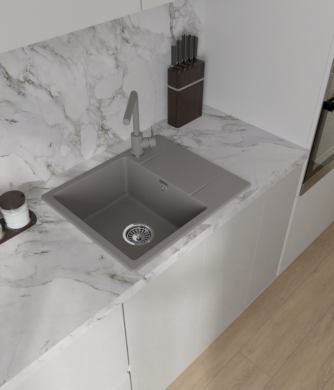 Мойка GRANFEST GF-UR-258L темно-серый 1-чаша+крыло