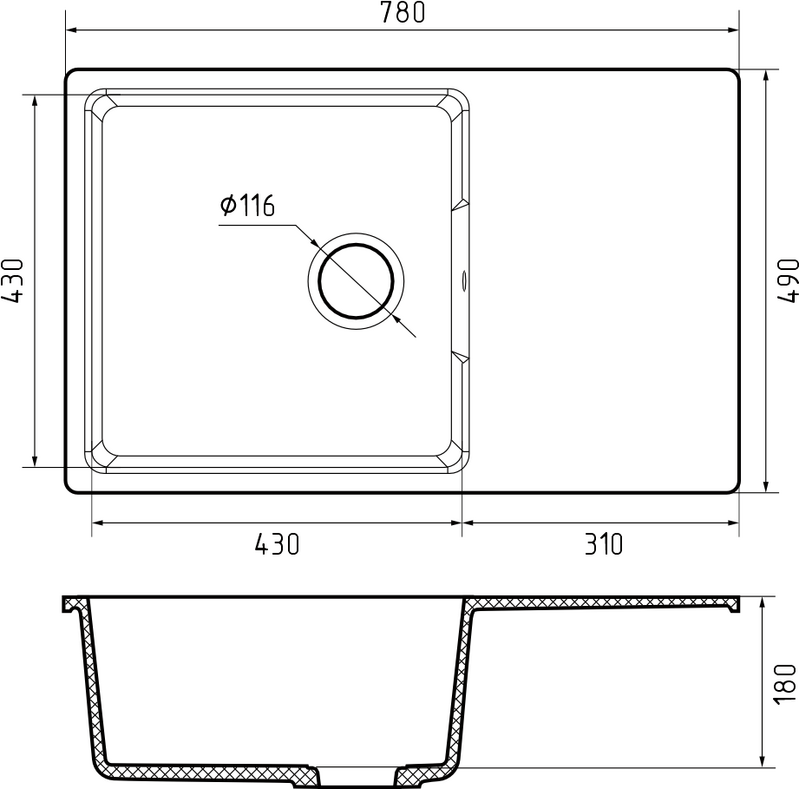 Мойка 1 шт., сливная арматура, гарантийный талон 1 шт.