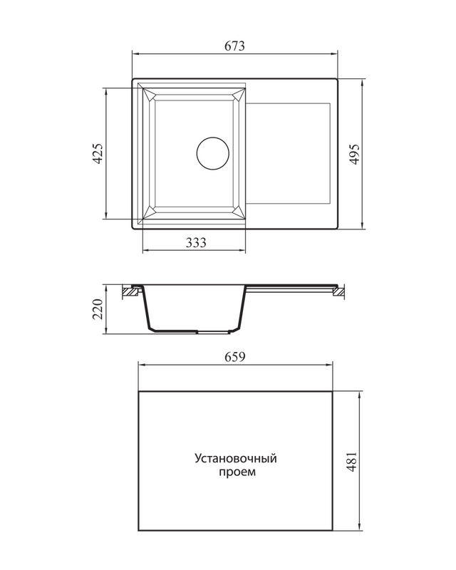 Мойка GRANICOM NOVELL София 673*495*200 мм (терра) (без сифона)