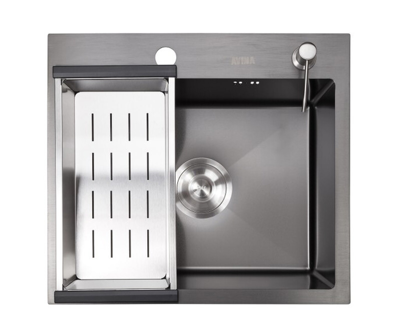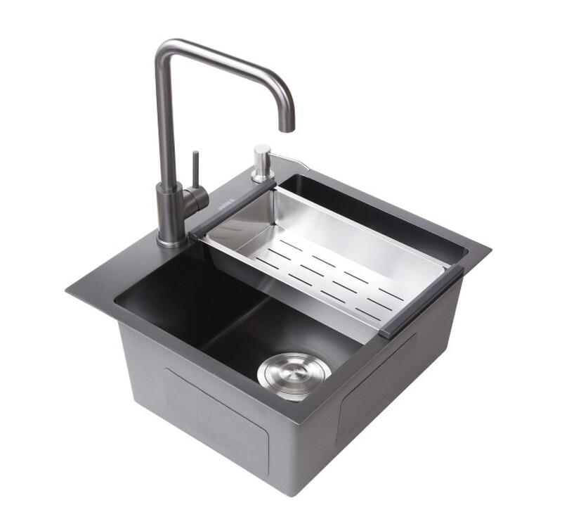 Мойка нерж врезная 450x480х230 т (3,0+1.2mm) черная НМ 4548 (+ сифон, колландер, дозатор мыла) AISI 304