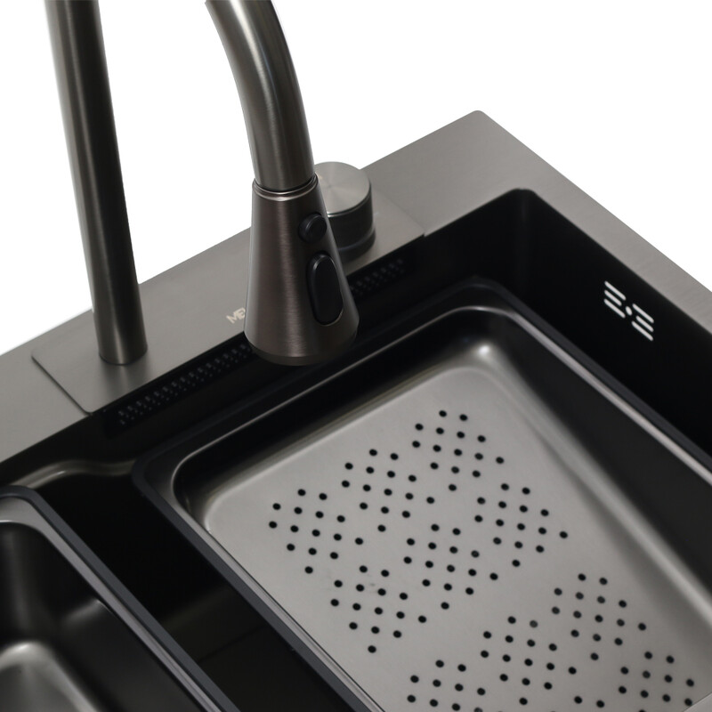 Мойка нерж врезная 680х460х220 т 3,0 ГРАФИТ D6846B+6 (+ сифон) AISI 304 + Подарок (Колландер, фруктовница, доска, 2 смесителя, дозатор) MLN