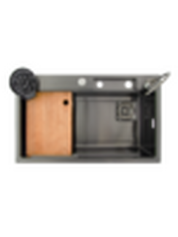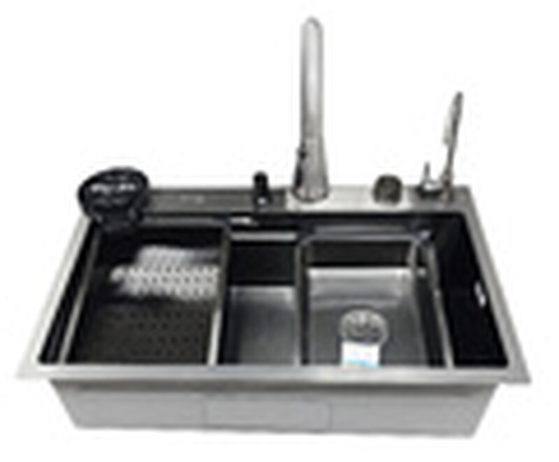 Мойка нерж врезная 750х450х220 т 3,0 ЧЕРНАЯ HB7545FB +6 (+ сифон) SANTREK AQUA + Подарок (Колландер, фруктовница, доска, 2 смесителя, ополаскиватель)