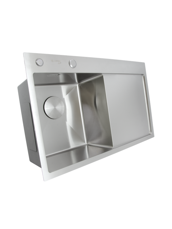 Мойка нерж врезная 780х480х220 т 3,0 САТИН D7848HLS левая (+ сифон +дозатор + колландер 420х220) SANTREK AQUA