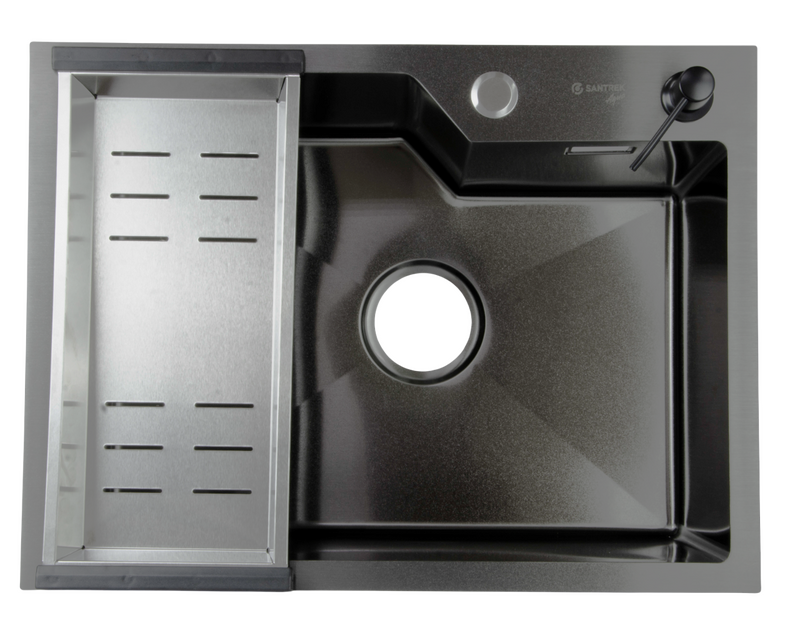 Мойка нерж врезная SANTREK AQUA 600х450х220 т 3,0 ЧЕРНАЯ D6045NB (+ сифон + дозатор) + КОЛАНДЕР 440х220 В ПОДАРОК!!!