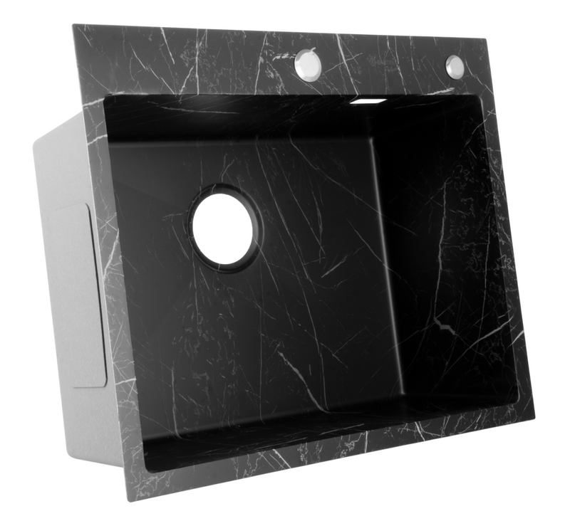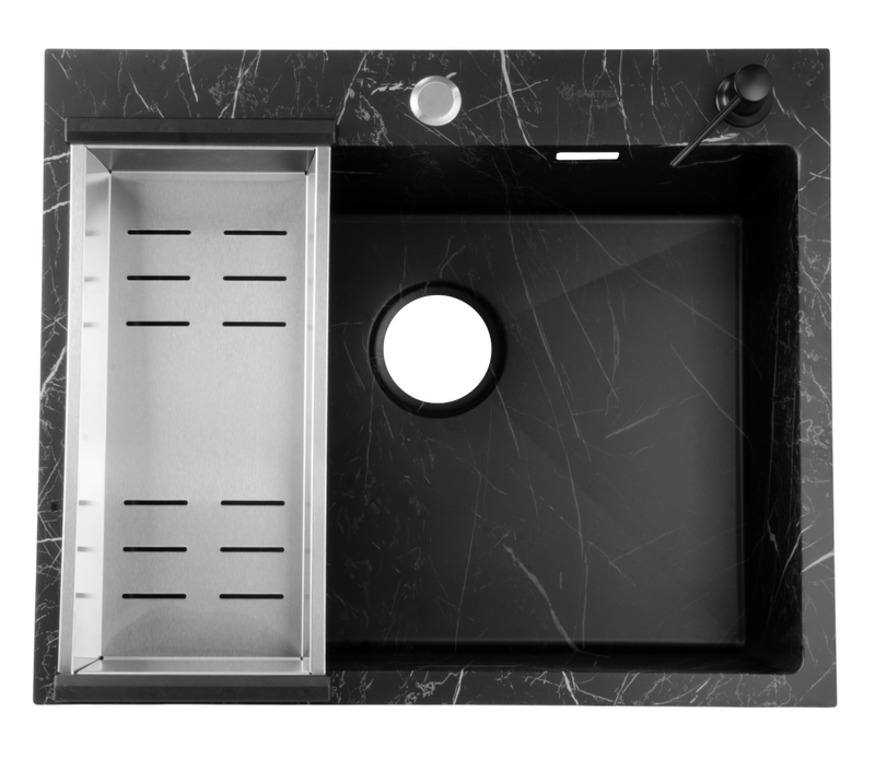 Мойка нерж врезная SANTREK AQUA 600х500х220 т 3,0 ТЕМНЫЙ МРАМОР D6050HY(B) (+ сифон + дозатор) + КОЛАНДЕР 440х220 В ПОДАРОК!!!