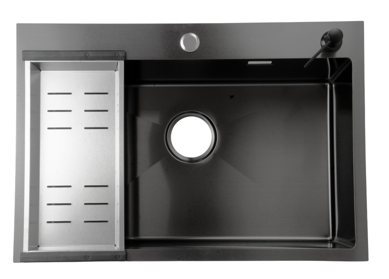 Мойка нерж врезная SANTREK AQUA 700х480х220 т 3,0 ЧЕРНАЯ D7048HB (+ сифон + дозатор) + КОЛАНДЕР 420х220 В ПОДАРОК!!!
