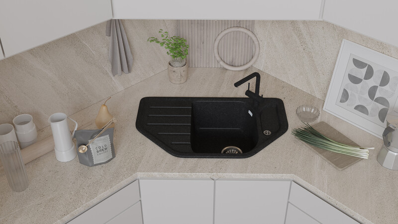 Мойка SANTREK AQUA BOXY SA-A800 угловая 790*490 мм (черый-308) (без сифона)