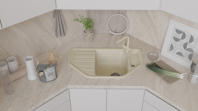 Мойка SANTREK AQUA BOXY SA-A800 угловая 790*490 мм (песок-302) (без сифона)