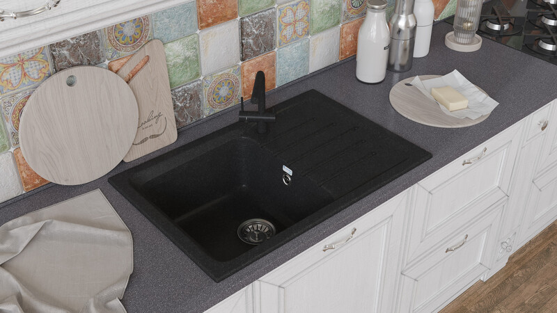 Мойка SANTREK AQUA BOXY SA-B760L чаша + крыло 760*500 мм (черный-308) (без сифона)