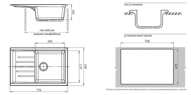 Мойка SANTREK AQUA BOXY SA-B760L чаша + крыло 760*500 мм (песок-302) (без сифона)