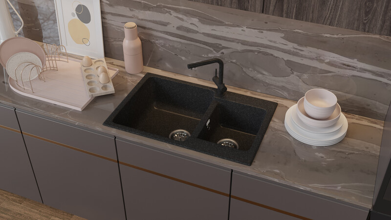 Мойка SANTREK AQUA BOXY SA-B780K 2 чаши 780*510 мм (черный-308) (без сифона)