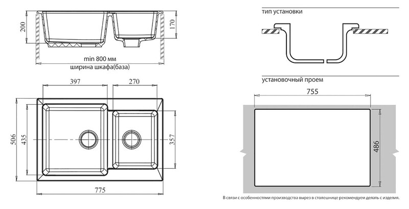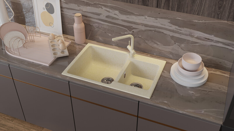 Мойка SANTREK AQUA BOXY SA-B780K 2 чаши 780*510 мм (песок-302) (без сифона)