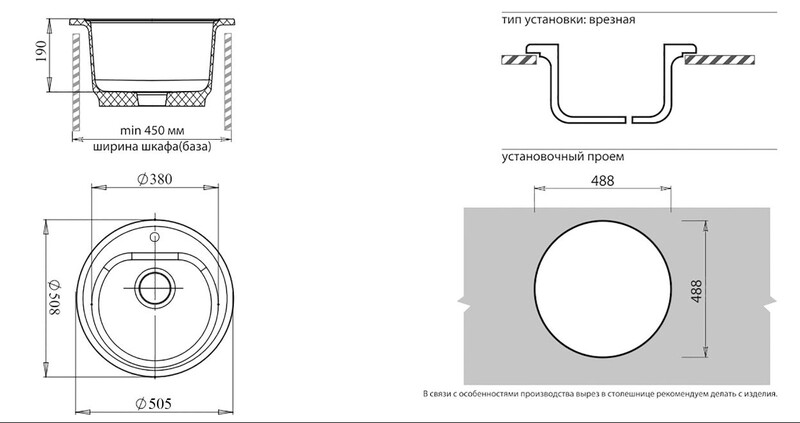 Мойка SANTREK AQUA ROUND SA-R510 D=510 мм, круглая (черный-308) (без сифона)
