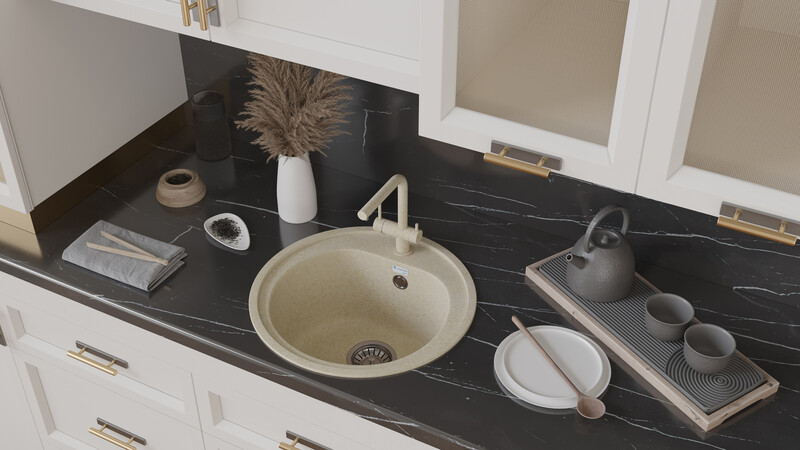 Мойка SANTREK AQUA ROUND SA-R510 D=510 мм, круглая (песок-302) (без сифона)