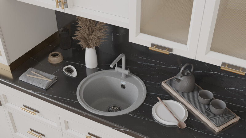 Мойка SANTREK AQUA ROUND SA-R510 D=510 мм, круглая (серый-310) (без сифона)