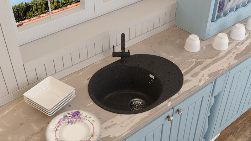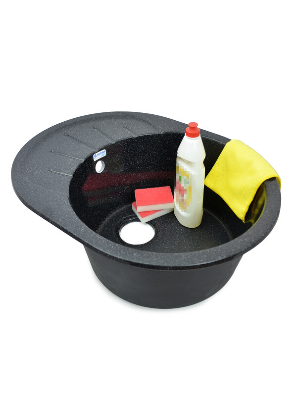 Мойка SANTREK AQUA ROUND SA-R580L чаша + крыло 580*450 мм (черный-308) (без сифона)