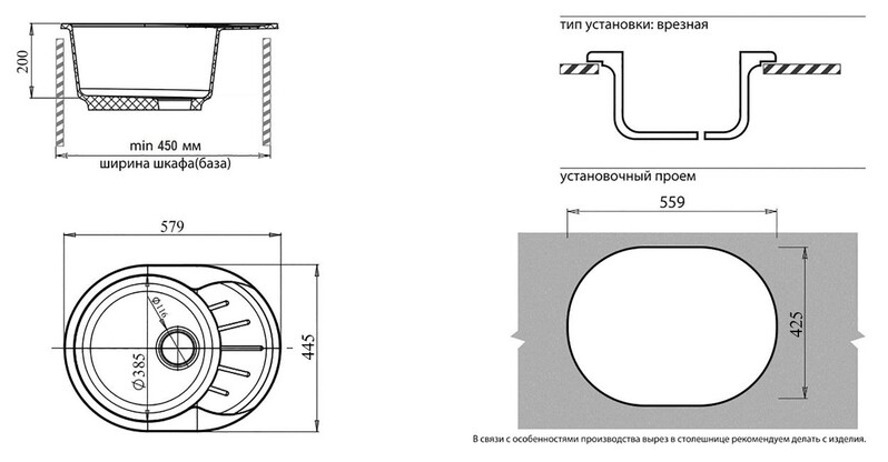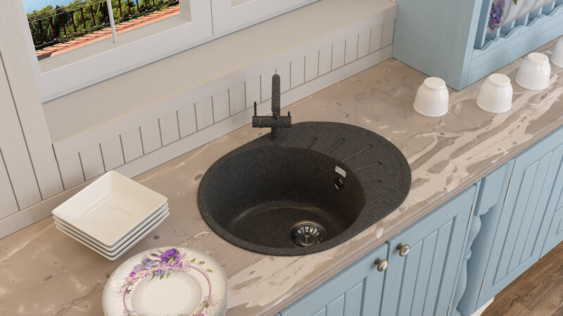 Мойка SANTREK AQUA ROUND SA-R580L чаша + крыло 580*450 мм (графит-309) (без сифона)
