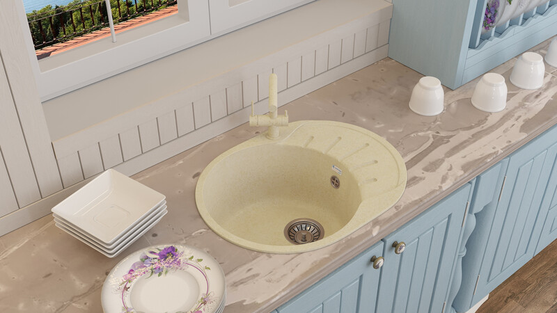 Мойка SANTREK AQUA ROUND SA-R580L чаша + крыло 580*450 мм (песок-302) (без сифона)