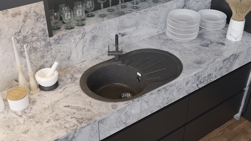 Мойка SANTREK AQUA ROUND SA-R750L чаша + крыло 750*460 мм (графит-309) (без сифона)
