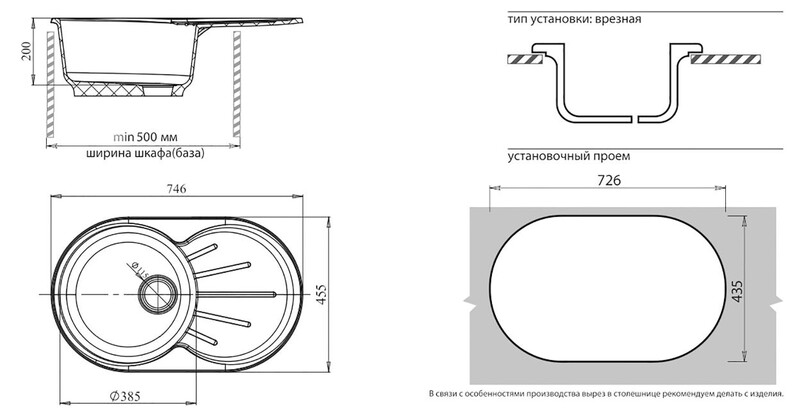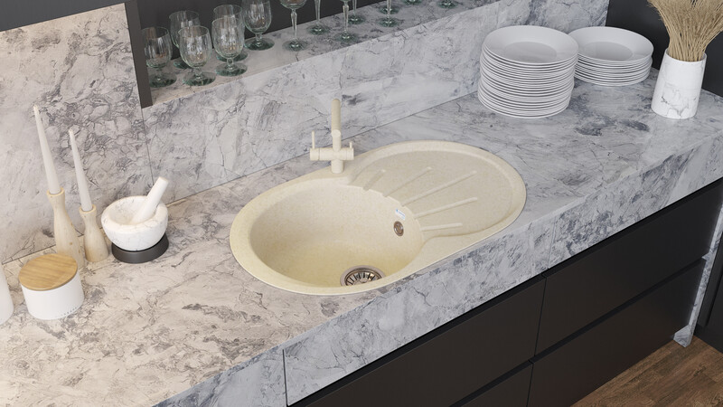 Мойка SANTREK AQUA ROUND SA-R750L чаша + крыло 750*460 мм (песок-302) (без сифона)