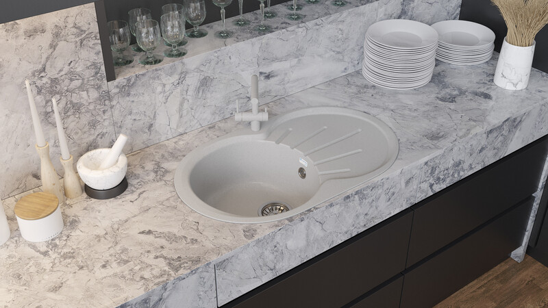 Мойка SANTREK AQUA ROUND SA-R750L чаша + крыло 750*460 мм (серый-310) (без сифона)