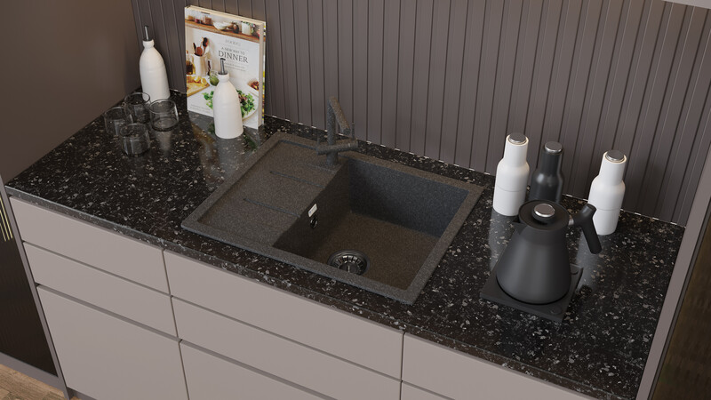 Мойка SANTREK AQUA SQUARE SA-S650L чаша + крыло 650*500 мм (графит-309) (без сифона)