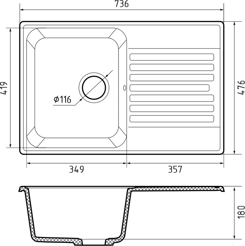 Мойка SANTREK AQUA Verto SAV736 чаша + крыло 736*476 мм (песочный) (+сифон)
