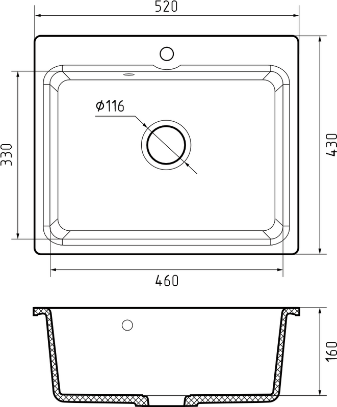 Мойки GRANFEST SMART SM520 (мрамор) 1-чаша 520х430мм ПЕСОЧНЫЙ (без сифона)