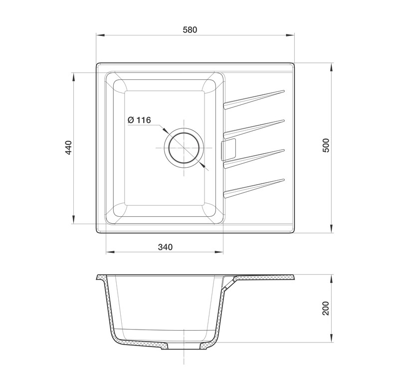 RIVELATO Мойка RAUM 58 1-чаша 580*500мм beige scuro арт.RM-58 beige scuro