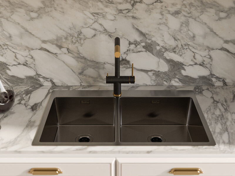 Rivelato Rinox 8050 B2 PVD black Мойка нерж.сталь 2 чаши 800*500*200 мм арт.8050 B2 PVD black