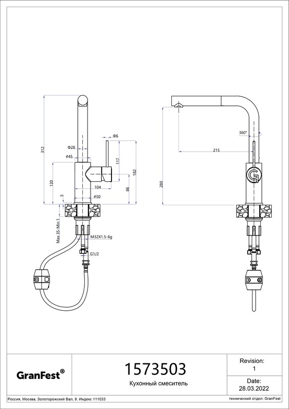 Rivelato Смеситель для кухни Albano Г-обр.с выдвижной лейкой D-35мм nero/oro арт.1573503 nero oro