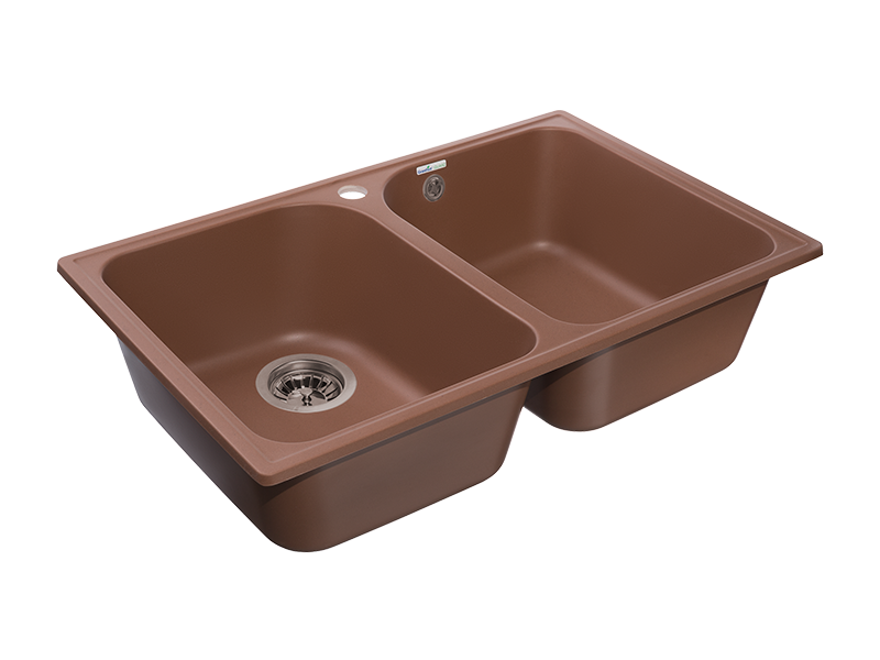 GranFest QUARZ. Мойка GRANFEST--QUARZ (ECO) - 15 2 чаши 740*480 мм (ТЕРРАКОТ)(без сифона)