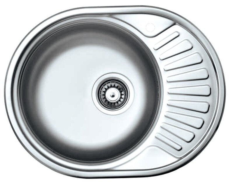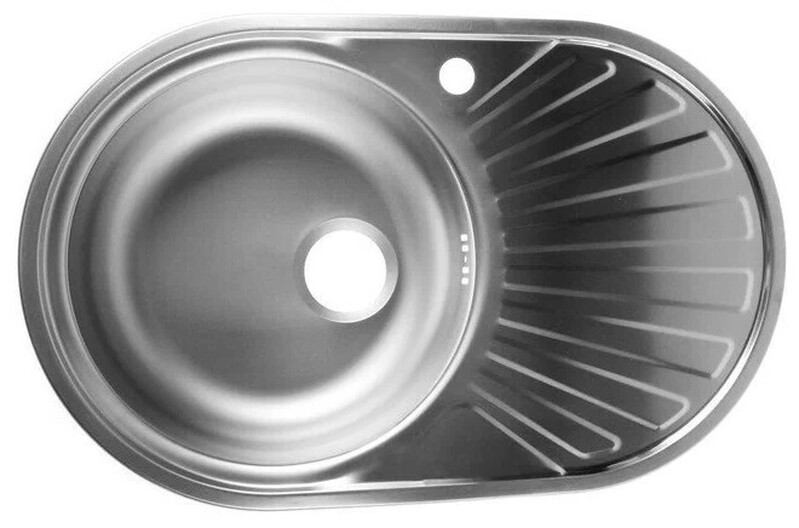 БЕЗ БРЕНДА. Мойка нерж врезная 48х77х16 т.0,6 ОВАЛ правая (+бол. сифон) РОССИЯ