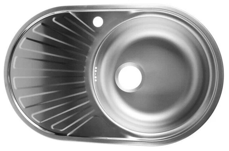 БЕЗ БРЕНДА. Мойка нерж врезная 48х77х16 т.0,6 ОВАЛ левая (+бол. сифон) РОССИЯ