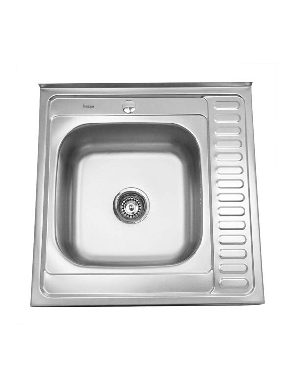 БЕЗ БРЕНДА. Мойка нерж 600х600х160 т.0,6 бол.сиф. (+сифон) левая Китай