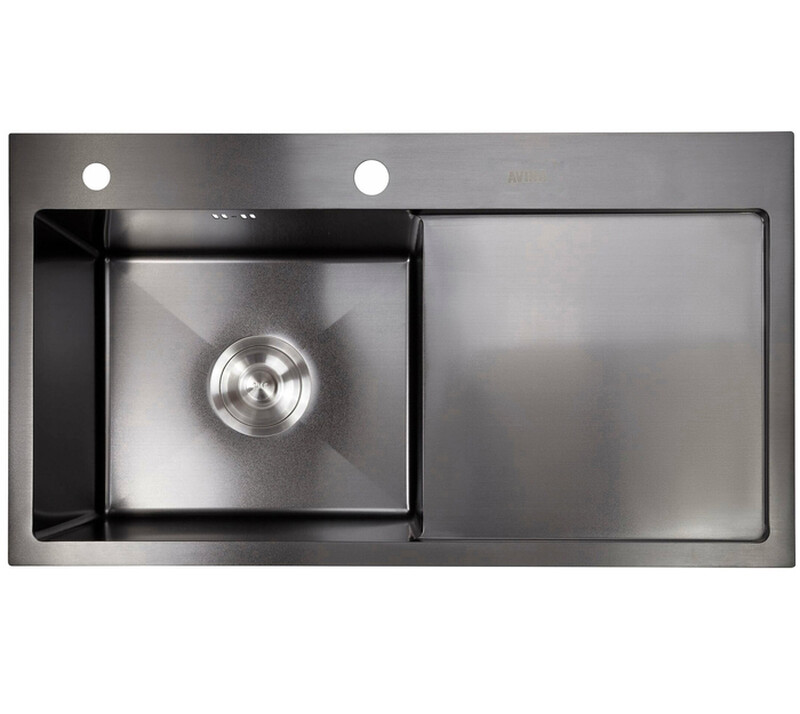 Avina. Мойка нерж врезная 780x480х230 т (3,0+1.2mm) черная НМ 7848 L левая black (+ сифон, колландер, дозатор мыла) AISI 304